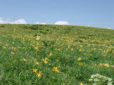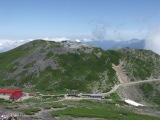 | コメント | 快晴。この日、特急電車では甲府まで座れなくて、軽い乗り物酔いになりました(中央線はカーブが多く、上下左右に結構揺れました)。車山肩までのバスは快適でした。 車山肩でバスを降りた時に、快晴で、涼しい風に、 すごい爽快感を感じました。 バス停近くの、ニッコウキスゲの群落が見事でしたが、他はあまりありませんでした。 大草原の中を、車山頂上への眺めの良い広い道を、大勢の人と行きかいながら、ゆうくり登りました。 車山頂上には、気象観測用のレーダードームがあり、大勢の観光客と、ハイカーで賑わってました。快晴で、展望は360°ですが、遠くの山並みは殆ど雲の中でした。 頂上でのんびり大休憩。 白樺湖側からリフトでこの頂上まで多くの人が登ってました。 下りは、車山乗越経由で車山肩へと戻りました。 バスで上諏訪駅に降りた時、目の前で、丁度新宿行の高速バスが発車するところだったので、急きょ特急電車の予定を変更し、これに飛び乗りました。 |