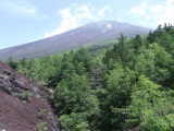 | コメント | 晴れ、時々曇り。 初め7月18日の予定が、私の都合でこの日に延期されました。 年初の頃から、それぞれの方の都合で、参加者が少なくなりました。 電車等の都合で、途中大月から一人合流しました。 富士山駅からのバスは混んでいて、座れませんでした。 お庭でバスを降りたのは、私たちのグループだけでした。 奥庭へ降りていく道は、日陰で且つ曇りで、涼しく寒いくらいでした。 道はコンクリ舗装ですが、人気も無く、周りの林は、コメツガの様な原生林で、 やや遅めでしたが、ピンクのシャクナゲも所々咲いていて、 高山の雰囲気がありました。 奥庭は、低い針葉樹と溶岩石の地面で、箱庭の感じです。 富士山も、周りの山も、富士五湖も、見えませんでした。 一巡りして、お庭のバス停に戻り、車が渋滞のスバルラインを横切り、 お庭に向かって、雑談しながら登って行きました。 非常にゆっくりだったので、楽でした。 お庭は、森林限界に近いので、針葉樹の丈が低く、冬の強風の為、 枝先が風下に向かって曲がってました。 溶岩石が露出している所が多く、その分開けて明るい感じです。 着いたとき、曇りがちで、奥庭同様、周りは余り見えませんでした。 小学生らしい大きな集団が降りていくところでした。 ここで、ベンチで昼食をしているあいだに、急に晴れてきて、 ついに富士山頂まで見えました。雪がわずかに見えました。 ここからは、近すぎて富士山らしい形は崩れますが、 やはり雄大な景色です。 中国人(らしい)の集団が、何組も通過して行きました。 会った人の殆どが、中国人と言う、意外な結果でした。 彼らは軽装で、ザックもなく、履きものも軽い格好でした。 ここから、お中道をゆっくりのんびり、シャクナゲの花など見ながら、 富士山を見みながらの散歩の感でした。 5合目のバス停の休憩所で、お茶を飲みながら、 再び、秋口に来たいと、参加メンバーから話が出て、 今度は、3合目から登る事で、まとまりました。 それから新宿駅直行バスに乗り帰りました。 |