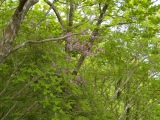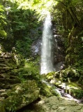 | コメント | 曇り、一時晴れ。 今回のハイキングは会としては、数日前まで雨予報の為、実施が危ぶまれましたが、 その後予報が良くなりなんとか実施できました。 でも、電車で五日市へ向かう途中、山の方が雲が低く垂れ込み、 予報では降らないと言ってましたが、今にも雨になるのではないかと心配になり、 雨が降る前に、頂上へ着ける様に、コースを逆にしようかと考えました。 五日市駅でバスの時間を調べたら、待ち時間が長くなり、 皆さんの意見も聞いて、無理と判断して 結局、予定通りのコースにしました。 今回は、この会としては、初めての参加者が一名ありました。 ただ、他の会のハイキング(私の主催)で顔見知りでした。 又、山と路としては久しぶりに、お子さん達の参加も有りました。 私は、頂上は最近も含めて何回の登ってましたが、今回のコースは50年ぶり 他の方は初めての方が多かったでした。 この、時坂から浅間嶺を経て人里のコースは、江戸時代前の甲州街道で歴史的なコースです。 バス停で全員集合。バスは私達は全員座れましたが、混んでいて座れない人が大勢いました。 沸沢の滝入り口で、私達を含め半数位の人が降りました。 滝までの道では、樹林帯の沢沿いの緩やかな道。 以外に晴れ間もあり(あいまいな記憶)、木の日影で涼しい散歩路の感じ。 お子さん達は例によって、虫探しで夢中。道草の連続になりました。 滝は、前に見学した事は有りましたが、滝そのものは余り覚えてませんでした。 数段で落差の合計が60mで、よく見ると相当なものだ。日本の滝100選。 水が霧状になっていて、まずまずの見栄え。右上の写真。 冬に、全面結氷する事がある理由が、霧状で解りました。 前日の雨で、水量が多目の模様。 ここで記念写真を撮りました。 帰り、郵便局マークのある店を見学し、浅間嶺登山口に戻りました。 ここから時坂の集落の終わりまで、殆どが舗装した道路歩きになりました。 でも、交通量が非常に少なくて、風情のある古民家が点在し、割と快適。 途中、消防倉庫の鐘で遊んだりしました。 久しぶりに、お子さんから歌もでました。私も久しぶりに同調しました。 時坂峠近くで、野生のサルがいて、道路を歩いたり、こちらを見たりで、 お子さん達が大騒ぎ。大人もでした。 ここではゆっくり歩きましたが、私達を追い越すハイカーが全くいませんでした。 多くのハイカーが逆コースの様です。 時坂峠は、都心方面に展望があり、高層ビル群がボ゙ヤーと見えました。 ここで、いい時間なったので、軽い昼食を考えましたが、 風が強く、意外と寒いので、良さそうの所を探しながら歩きました。 この少し先で、左から車道が合流する所の少し手前の平らで草地のある所で、 大人と子供の2人ずれが食事をしてました。 聞くと、”浅間嶺まで行くつもりで来たけど、ここでリタイアしょうかと思っている” との事。 ここの隣をかりて軽く食事をしました。 半分位日差しがあり、日差しを避けて座りました。 雨どころか、結構日差しも有りました。 食事後、この2人連れと別れて、(結局この人たちとは、後で会い、浅間嶺まで一緒でした) 車道を行くと、すぐ茶店のある所に出ました。店の前は車道で車で可でした。 確か店があったと記憶してましたが、見たら思い出しました。 ここで大人数のハイカーが休んでました。 冷たい水がホースから流れっぱなしになってたので、ご馳走になりました。 小休止後、歩き始めてまもなく、車道が終わるところで、 山の中の一軒屋の古民家を改造した、小奇麗なソバ屋がありました。右の写真。 結構人がいる気配。 丁度、浅間嶺から降りて来た5,6人のグループのハイカーが入っていきました。 ここを目当てに、浅間嶺に来る人も多い様です。 ここから車道を離れて、やっと本格的な山道に入りました。 沢沿いの、杉や檜の針葉樹林帯を登って行きました。 時々、降りて来るハイカーとすれ違いました。 鶯のサエヅリも聞こえ、山奥深い雰囲気につつまれました。 いつの間にか、お子さん達がどんどん先に行くようになり、 それに吊られて、数人が付いていき、 私ともう一人が離れて遅れて行くようになりました。 私も自然と早足になりましたが、追いつけませんでした。 やがて、先を行くメンバの気配が全くなくなりました。 沢から離れ、尾根を巻く様になり、 回りの木も針葉樹から広葉落葉樹の自然林になりました。 頂上への近道の分岐のところで、先行メンバが待ってました。 先の大人と子供の2人ずれも一緒でした。 ここで、どちらでも大差は無かったのですが、 先の2人ずれは展望台経由の近道を選択しました。 お子さん同しが年齢が近いせいもあり、 こちらの,お子さん2人は、あちらのお子さんについて行きました。 それにつられて、こちらの大人も何人かが行きました。 結局、私他2人がトイレの都合で巻き路を選びました。 しばらくして、頂上で合流。 予定よりやや遅く2時20分頃着。 (これは