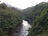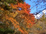 | コメント | 晴れ後曇り、最後に雨。 天気予報にやや不安材料があったので、 実施か否かの連絡を、今回は前日の朝にしました。 実際の天気は、御前中は予想以上に良い天気になり晴れました。 今回も、山と路としては初めての参加者が2名ありましたが、 この方達は、私が主催する他の会のハイキングに参加されてました。 立川駅のホームでほぼ全員集合後、電車のなかで全員集合しました。 青梅までは電車はやや空いていて、全員すわれました。 青梅駅で電車の乗り換えでしたが、 これが予想外に、すごく混んでいて、座れませんでした。 まー青梅まで座れたので良しとしました。 軍畑駅に着いた時、話に夢中になっていて、 もう少しで乗り過ごすところでした。 (乗り過ごしのないように気を付けていた、にもかかわらずでした。) ここで、支度した後、 今回も初顔合わせの人が多かったので、簡単に自己紹介をしました。 すぐに出発。 私は今回のコースは、昔 歩いた事が有りましたが、 この駅からの線路に平行した下りの道だけ覚えてましたが、 後はなぜか全部忘れてしまいました。 この道からすぐに県道のような広い道を少し歩いて、。 やや狭い舗装道路に入って行きました。 殆ど車が来ないので、私達は、てんでにひろがり雑談しながら、 ゆっくり登って行きました。 日を遮るものが無いので、歩くにつれ11月でも日差しが暑いくらいだ。 ”今日は寒い”と言う予報だったのに。 右に水の綺麗な流れがあり、ところ所に淵があり、誰からか、 ”ここで泳いだら気持ちよいだらおうな’などと話ながら歩いて行きました。 谷あいに人家と畑が点在していて、のどかな風景。 ゆずが目立ちました。 車道から細い登山道に変わる所で小休止。 ここの家の軒先に、ゆず などの小さな直売場が有り、 私は、うどんに入れようと、なめたけを買いました。 (うどんの楽しみが出来たと喜んでいたら、後でとんでもない事が判明。) 登山道の途中に森林が伐採されたところが有り、 すすきが一面に咲いていたのが、印象的でした。 耳を澄ますと、虫の音も聞こえてきて、 場所によっては、まだ虫もいるのだなと思いました。 何時の間にか雲が増え、晴れ間は殆ど無くなりました。 道は段差の大きい階段が多く、谷川岳ほどではありませんが、 足にはきつい登りです。 何号目と記された石柱の標識があり、新しい石柱でも、 この山の古い信仰を伺わせていました。 お寺が近ずくと、針葉樹林の間にたまに見える、 少し色づいた紅葉が映えてました。 頂上近くのお寺は、常福院。古い趣。 裏手の紅葉を写真に撮りました。右の写真。 トイレを済ませて、ここから登り始めるとすぐ、 展望が少しある東屋があったので、ここで昼食にする事にしました。 先客がいましたが、この人達が出るまでの間、 リュックの中への小さなお子さんがこの場の主役になりました。 私はおにぎりを食べながら、すぐにうどん作りに取りかかりました。 出来上がって、いざ盛り付けしようとしたら、 おわんを忘れたのに気ずきました。 結局、どうにもならず、食器を持っていた数人だけにおすそわけしました。 私のうどん作りは、いつも必ず何かしらのトラブルです。 食事後、皆さんの提案で予定より早く出発。 高水山の頂上は頂上らしからぬ頂上。鉄柱とかが雑然とした感じ。 記念写真、でも珍しく他にだれも居ず、交代で撮りました。 展望も無いので、すぐ出発。 この先の尾根は、右は落葉広葉樹林、左は常緑針葉樹林。 右手の紅葉は少し見れましたが、後1週間位先が最盛期か? 晴れたら結構見ごたえが有りそうでした。 岩茸石山は予想通り、北面が展望有りでしたが、 あいにくの天気で、霞と雲で、遠くの景色は見えず。 空は今にも降り出しそうな色になって来ました。 皆さんから出る言葉は、”早く降りよう” でした。 せかされる様に、下山開始。 名坂峠までは相当急な下り。 この先の八桑バス停までも始めの方は、 やはり急な下りと、滑りやすい細かな砂利状の地面、 右に下の急斜面を見るトラバースで、ゆっくり慎重に降りました。 この険しさは予想してませんでした。 一時、「途中で道を間違えたのか」 とも思いました。 半分位降りたところで、小休止を提案したところ、 ”早く降りた方が良い”との意見が多数でしたが、 ”まだ先は長い”との私の判断と、希望でここは小休止にしました。 ここで私は誤ってストックを踏んずけて曲げてしまいました。 夕闇せまる暗い林の中でも、幸い足元の道は良く見えました。 登山道の傾斜が緩くなったあたりで、ついに小雨が降り始めてしまいました。 予報以上に早く雨になりました。山の天気は解らないものです。 車道に出たところで、何名かは傘を出しました。 直ぐにバス道に出て、出たところが、八桑バス停でした。 ここで駅まで歩く案も出されましたが、歩いても早く駅に着くわけでもなく、 途中でバスに追い越される可能性有りで、それは止めました