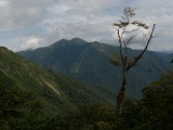 | コメント | 曇り、一時晴れ、一時小雨。 この所、中止が多かったので、会としては久しぶりのハイキングになりました。 天気予報が、前後が悪くこの日だけずっと良い予報でした。 朝、予報よりやや悪く雲が低く垂れ込めた感じでした。 参加人数が少なかったので、時間と交通費の関係で、アクセスは車にしました。 狭山で同行者と合流。事情で出発がちょっと遅れました。 土耀日でも高速道路はやや混んでる位で殆ど渋滞無し。 水上インタで降りて国道に入り、水上の町を過ぎると殆ど車無し。 同行者と ”時期的に登山者が余りいないのかも” と話をしました。 これが間違いだったと後で解りました。 谷川岳ロープウエイ駅の立体駐車場に到着後、直ちに支度して、ゴンドラに乗車。 これは10数人乗りで、2分ごとに来るので便利だ。 10分でゴンドラの上の駅の「天神平」に到着。 標高1300m。雲っていて、さすがにやや涼しい。 ここはスキー場になっていて、私はスキーでは何回か来た所だ。 雪の時と全くイメージが違いました。 ここから谷川岳の頂上は雲がかかっていて全く見えませんでしたが、 その右(谷川岳の東)に朝日岳が形良く見えました。(右の写真) 登山者がちらほら。観光客もぱらぱらと見かけられました。 写真撮ったりして、すぐ出発。10時位でした。 今回のこのコースは二人共、初めて。 始め、比較的に平らで木道の歩きやすい道。 二本平行で、下りの人とすれ違い出来るので便利だ。 ”やっぱり木道は歩きやすいね” などと言いながら、 雑談しながら、のんびりと快調に歩いて行きました。 私達はややゆっくりなので、 たまに追いついてくる登山者グループに道を譲りました。 歩くにつれ、傾斜が増し、木道に滑り止めが付き、階段も出て来ました。 曇り勝ちで、時々晴れ位の天気。 周りはブナの大木で、日影になって、暑さを防いでくれました。 時間的なせいか、小鳥の囀りが殆どなし。 1時間位で熊穴沢非難小屋に着。、 割と楽だったからかここまで珍しく休み無し。 小屋の中は数人が休んでましたが、 やや暑かったので、外で小休止。すぐに出発。 この小屋を過ぎてから、道が急になり、木道が無くなり、 岩の露出が多くなり、急な階段と、大きな段差が多くなりました。 登るにつれ、下山者が増え、なぜか登山者も多くなってきました。 岩場では、ロープや鎖が出て来ました。ここではすれ違いが難しく混雑状態。 危険は殆ど感じられませんでしたが、 私達は、後ろから来る人に道を譲るのが難しく、 ついスピードがちょっと速くなってしましました。 珍しく息が切れ、 足の筋肉にも、かなりの負担がかかってるの感じられました。 何時のまにか森林限界を超え、周りは潅木と草原模様(笹)。 肩の小屋近くの標識が見えてきて、 周りの山も雲をかぶりながらも見えて、 特に印象的だったのが、西に見えた「俎たぐら(まないたぐら)」(右の写真) の鋭い岩峰でした。(これは登っている時は山の名前が良くは解らず 、オジカ沢の頭にしてはとがり過ぎと思いながら、雲が邪魔で確認できずでした) 沼田の近くの町も見えました。 途中、下山者から”頂上は大混雑”との情報が入りました。 疲労が出てきたころ、肩の小屋に到着。大勢の人だかり。 人がつながりの状態の草原状のゆるい傾斜の先に、頂上がま近にありました。 ここ来て、昔、来た記憶が蘇りました。 小屋は新しく綺麗になってました。 まず先に頂上へ行きました。 やっとトマノ耳の頂上に到着。同行者とねぎらい、達成を喜び合いました。 周りは雲で何も見えず。頂上直下のマチガ沢の岩壁も全く見えず。 頂上が狭く、記念写真の行列が出来てました。 私達も並び、前の人を撮ってあげて、この人達に撮って貰いました。 肩の小屋まで降りて、昼食。 とトイレ。 昼食は、今回は歩行時間が長かったので、うどん作りは止めました。 代わりに、初めて自作のパンを持ってきました。 トイレは一人用のものが2つあって、かなりの行列が出来ていて、 相当の時間がかかりました。これは改善を希望したいところ。 何時の間にかガスが出て来て、さらに周りが見えなくなってきました。 小屋の中を見学。キレイな休憩室があるのに、 土足禁止の為か、誰も居ませんでした。もったいない。 帰りのロープウエイの最終時間を気にしながら、14時過ぎ下山開始。 もう人も少なくなってました。 下り、天狗のたまり場過ぎてしばらくして、心配していた雨がポツポツ来ました。 岩場が途中にあるので、ここが濡れない内に通過したい気持ちがありました。 でも、幸い雨具を出す程にはならずに済みました。、 足の疲れで滑らない様に慎重にを心がけ。 気がかりだった鎖場の下りは、思ったより簡単で、登りより楽でした。 熊穴沢小屋で外で小休止している時、小屋を写真に撮っていたら、 近くに居た話をした人が、親切にも”写真を”と、勧められたので、 せっかくなので撮って貰いました。 ゴンドラの駅に着いた時
