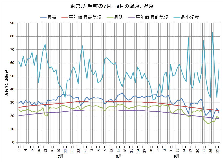 このことから夏の昼の暑さは、60年間あまり変わって無いと言えます。