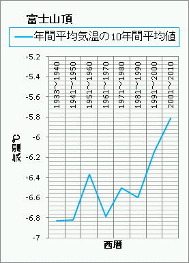やはり、気温の10年間平均値のカーブは富士山頂と似てます。