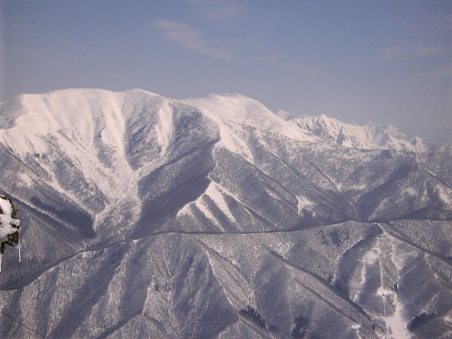2012年2月下旬 苗場スキー場、筍山山頂(1790m)から、谷川連邦を望む