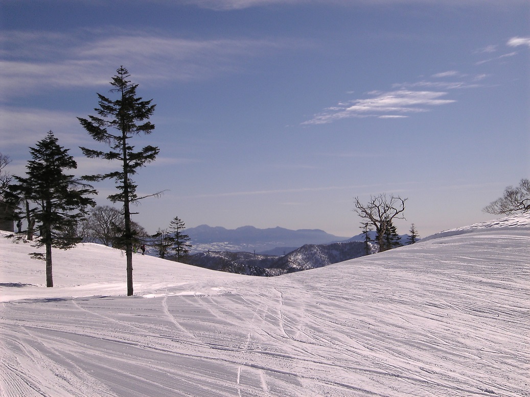 正面の遠くに赤城山(関東平野から見たのと大分形が違います。)
