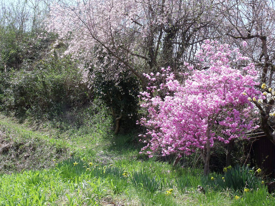 (上が桜、右がミツバ(?)ツツジ))