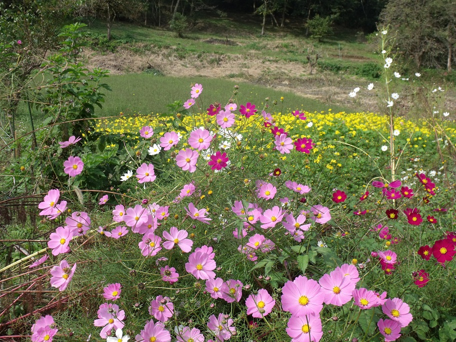 2012年10月27日、石老山入口バス停から顕教寺へ行く途中のコスモス。